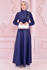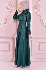 Fiyonklu Saten Elbise Zümrüt ASM2465