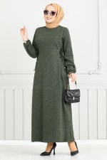 Belden Bağlamalı Tesettür Elbise 22037UKB929-M Haki