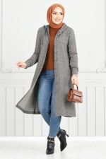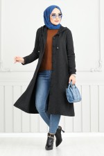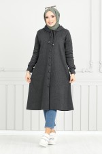 Önden Düğmeli Tesettür Kap 22036UKB929-M Antrasit