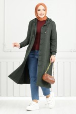 Önden Düğmeli Tesettür Kap 22036UKB929-M Haki