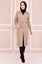 Kuşaklı Triko Hırka Vizon KLC10341