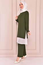 Bağcık Detaylı Kombin Haki EMO5011