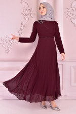 Taş Detay Şifon Abiye Bordo KBR21356