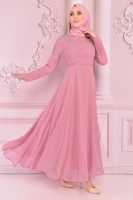 Taş Detay Şifon Abiye Pudra KBR21356