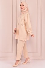 Taş Detaylı Kombin Bej CAS2206