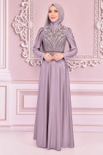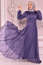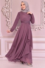 Kuşaklı Simli Abiye Lila KBR10027