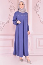 Dantel Detaylı Elbise Mavi ORG6710