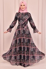 Bağcıklı Şifon Elbise Siyah VBR7355
