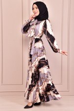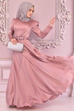 Kuşaklı Saten Elbise Siyah NEV14705
