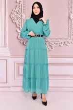Kemerli Şifon Elbise Mint KLO5345