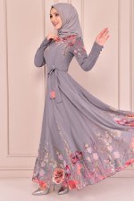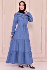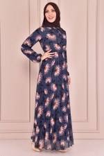 Bağcık Detay Şifon Elbise Petrol VBR7369