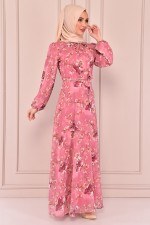 Bağcıklı Şifon Elbise Gül Kurusu VBR7356