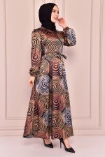Kuşaklı Saten Elbise Hardal ORG6701