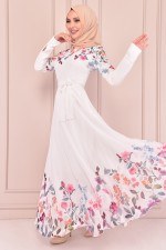 Kuşaklı Şifon Elbise Beyaz KBR6371