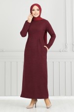 Cep Detay Balıksırtı Elbise 22032UKB929-M Bordo