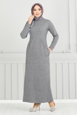 Cep Detay Balıksırtı Elbise 22032UKB929-M Gri