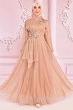 Güpür Detay Simli Abiye Vizon ASM10022
