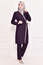 Pul İşlemeli Kombin Mürdüm KBR10016