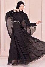 Kuşaklı Abiye Siyah KBR10028