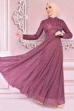 Kolyeli Tül Elbise Mor ASM2438