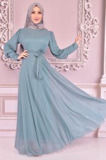 Kuşaklı Simli Abiye Mint KBR10027