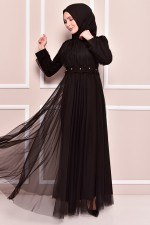 Güpür Detay Abiye Siyah TKN3465