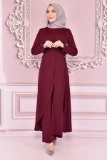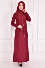 Pearl Detail Dress Burgundy ASM2386