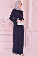 Kuşaklı Kadife Elbise Petrol EFY2912