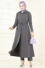 Beli Tünelli Tesettür Takım 23009UKB139-MS Antrasit