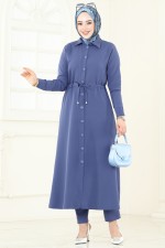 Beli Tünelli Tesettür Takım 23009UKB139-MS İndigo