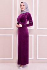 Kuşaklı Kadife Elbise Bordo EFY2912