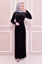 Kemerli Kadife Elbise Zümrüt EFY5861