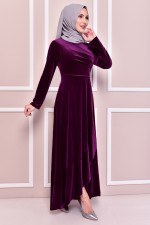 Drape Detay Kadife Elbise Mürdüm KBR21340