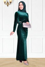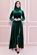 Drape Detay Kadife Elbise Zümrüt KBR21340