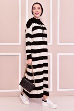 Kapüşonlu Triko Elbise Siyah KLC8280