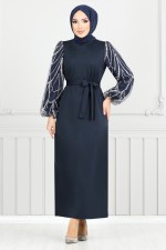 Kemeri Taş Detaylı Elbise 4445KTR927-M İndigo