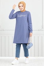 Yazısı Simli Tesettür Tunik 798OZR1047-M İndigo