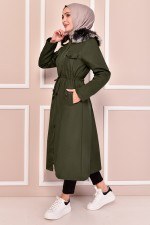 Kapüşonlu Kaban Haki MSN1814