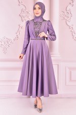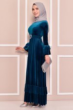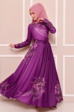 Kemerli Kadife Elbise Mürdüm EFY5861