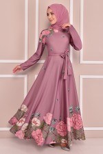 Kuşaklı Elbise Gül Kurusu KBR21335
