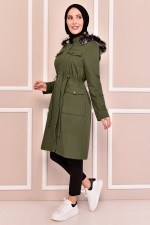 Kapüşonlu Kaban Haki MSN1818