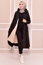 Kapüşonlu Kaban Siyah EMO7080