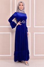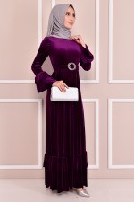 Kemerli Kadife Elbise Mürdüm EFY5861