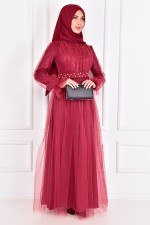 Dantel Detay Abiye Elbise Mor ASM2133
