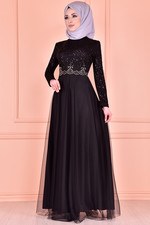 Kolyeli Elbise Siyah ASM2354