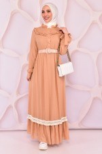 Kemerli Elbise Bej NEV14610