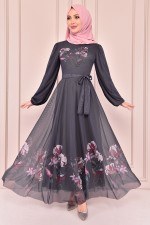 Şifon Elbise Antrasit KBR21312