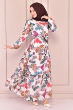 Şifon Elbise Beyaz NEV14640