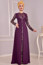 Gold Aplik Detay Elbise Mor ASM2070