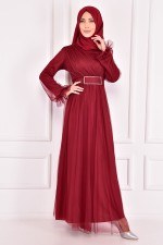 Tül Abiye Bordo ASM2392